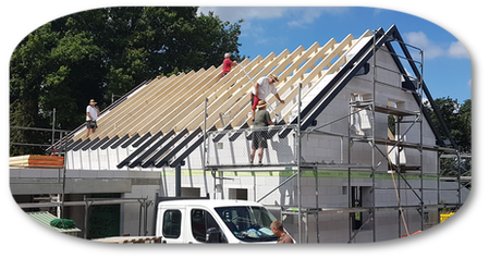 Vom Dachstuhl über Vordächer und Garagen bis zum Holzhaus fertigen und stellen wir Ihnen ihr Wunschdach auf.